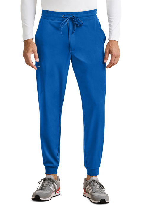 Made of a soft and stretchy fabric, the Rafael Mens Mid Rise Jogger features a zipper fly and elastic-reinforced waistband with drawstring. Seven pockets offer lots of organized storage: two front angled pockets, one cell pocket insider wearers left front pocket, two welt cargo pockets, and two back welt pockets. Back yoke for a better fit. Tonal rib-knit cuffs complete this mens jogger scrub pant. Modern fit. Tapered jogger leg, 9 opening. Inseam: 29